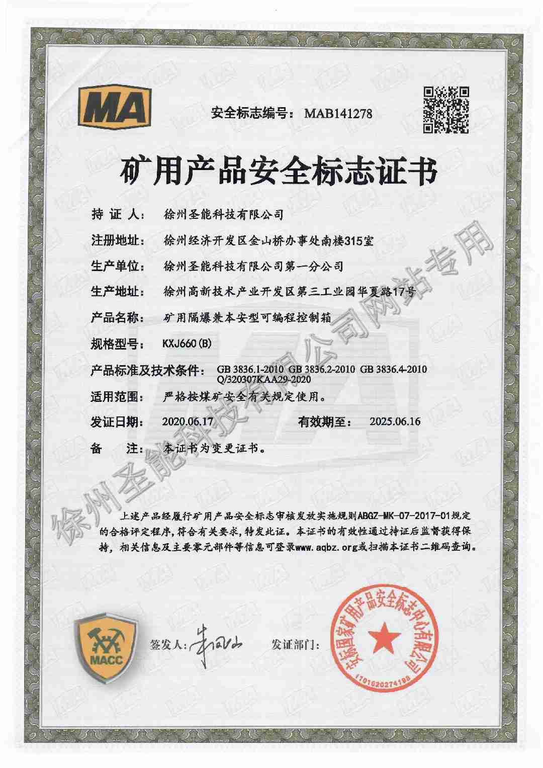 KXJ660(B)矿用隔爆兼本安型可编程控制箱防爆证
