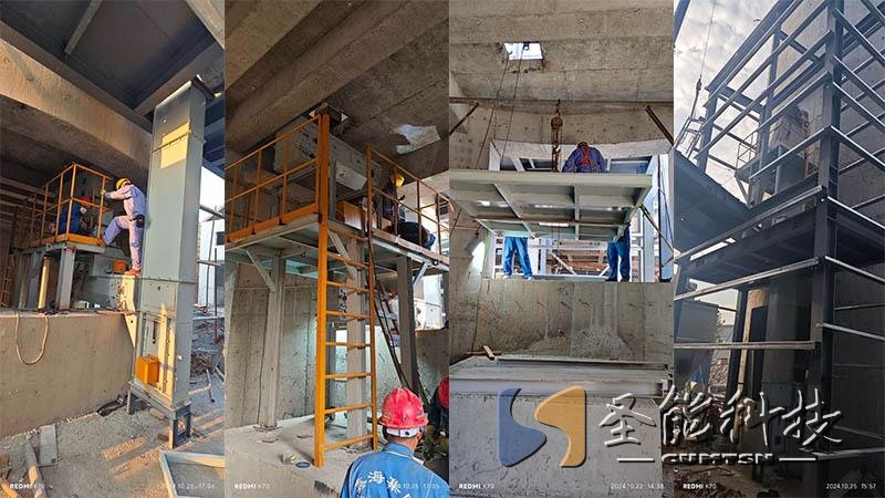 圣能售后工程师抵达项目现场后,首先将采样机采样运到位,确认好安装计划,立即开始做支架掉起采样头安装。采样设备、吊装破碎和一级给料设备安装比较顺利。由于现场打高了地基,导致现场上下层高由原来的5.5米变为4.5米,经过测量和详细沟通,采取采样溜管切断改造,后续一级给料和破碎全都固定完成后再进行补焊的方案。后续机械部分、平台很快顺利安装。