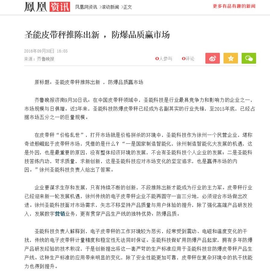 在中国皮带秤领域中,圣能科技是行业最具竞争力和影响力的企业之一,市场规模与日俱增。近3年来,圣能科技防爆皮带秤已经成为名副其实的行业先锋,至2015年底,已经占据市场五分之一的巨量规模。