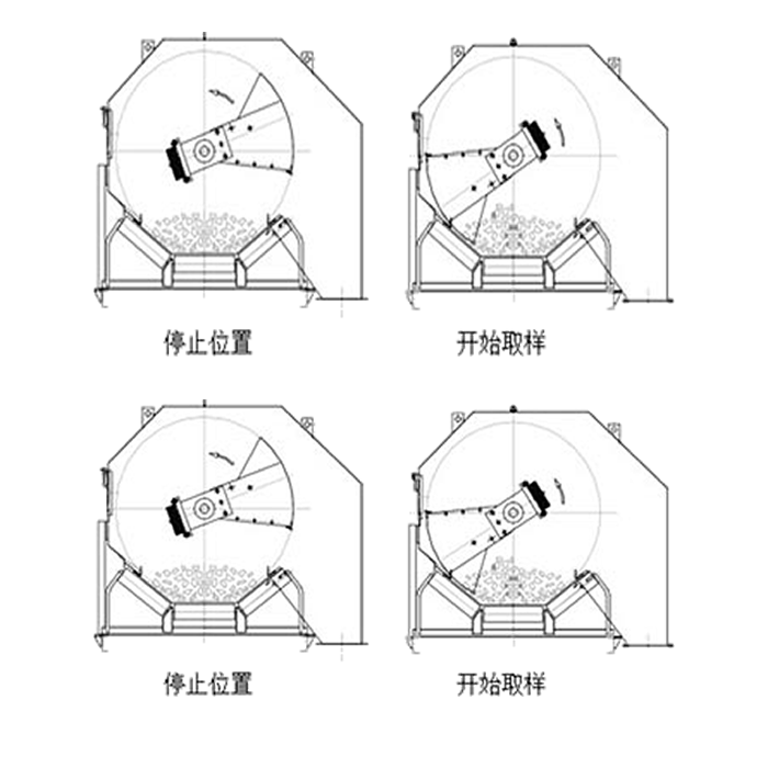 从皮带给料机上对破碎后的样品进行采样(缩分)。其特点是体积小,不发生堵塞,其工作过程平稳可靠,无噪音。